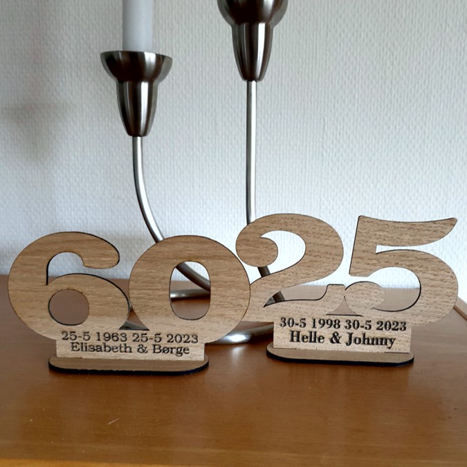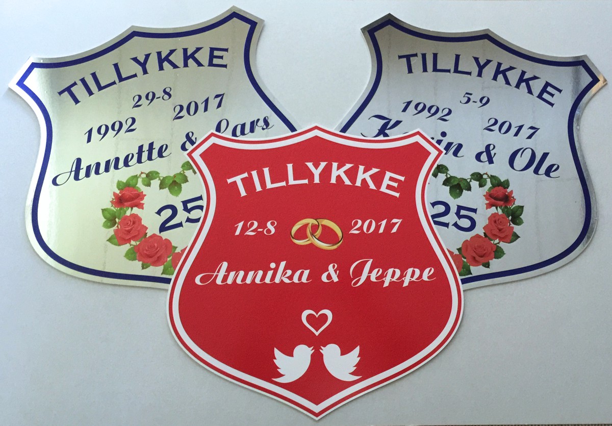 Bryllupsskjoldet fremstilles af laser graveret gravørplast og monteres med 3m dobbeltklæber.