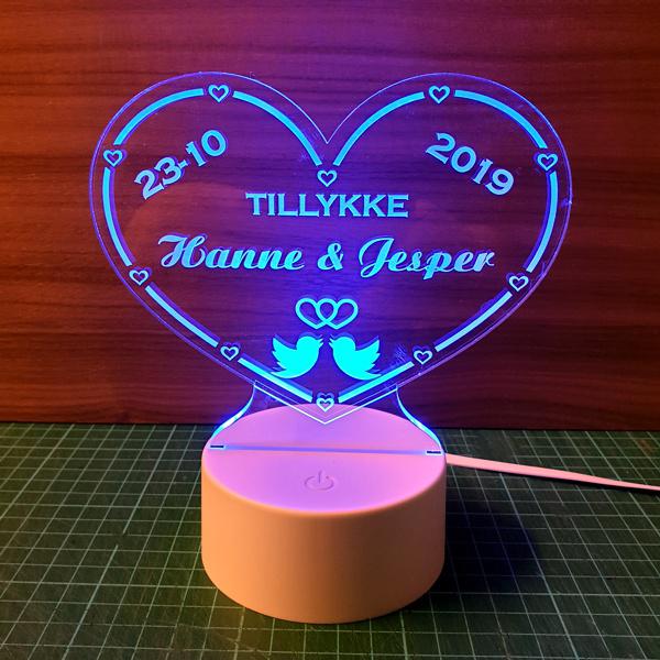 LED lampe inkl. Bryllupsskjold - størrelse på selve hjertet 150 x 150 x 4mm